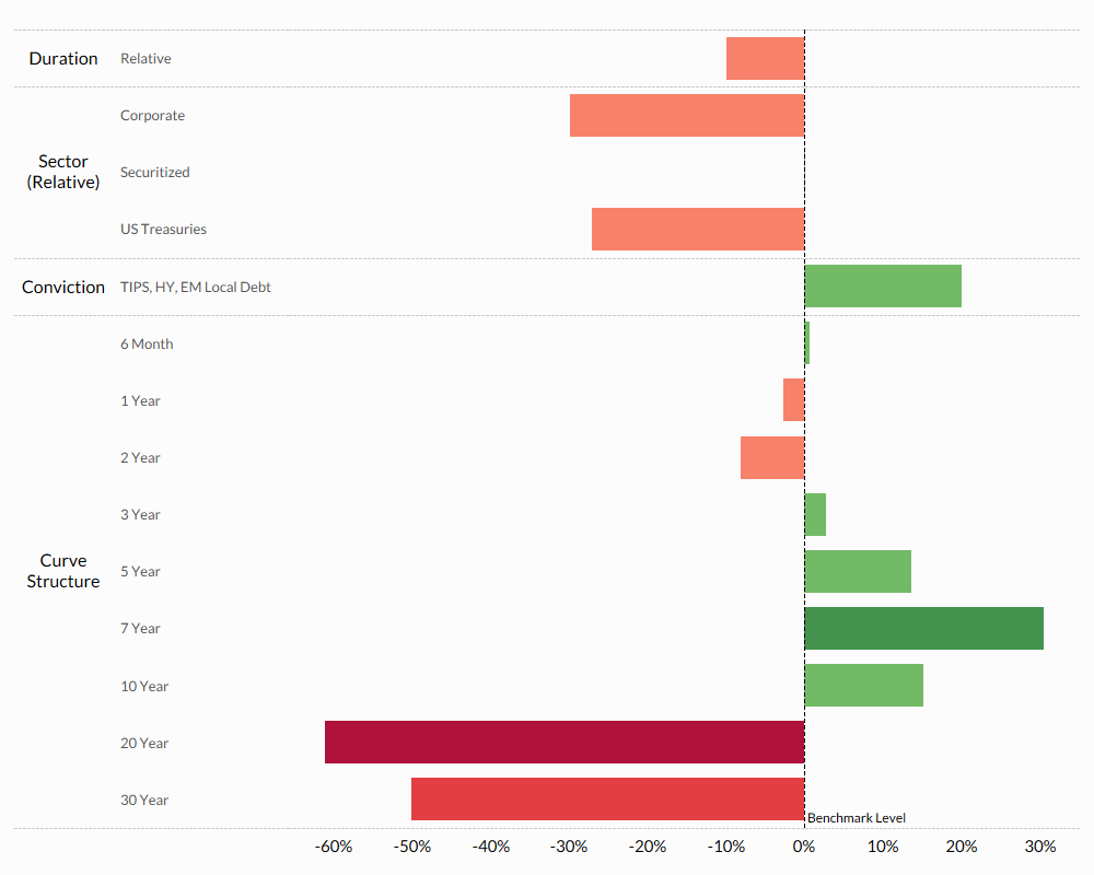 | Neutral Securitized | The index holds a neutral position relative to the benchmark within the securitized sector. In our view, the sector is appropriately valued, and our positioning reflects that. |