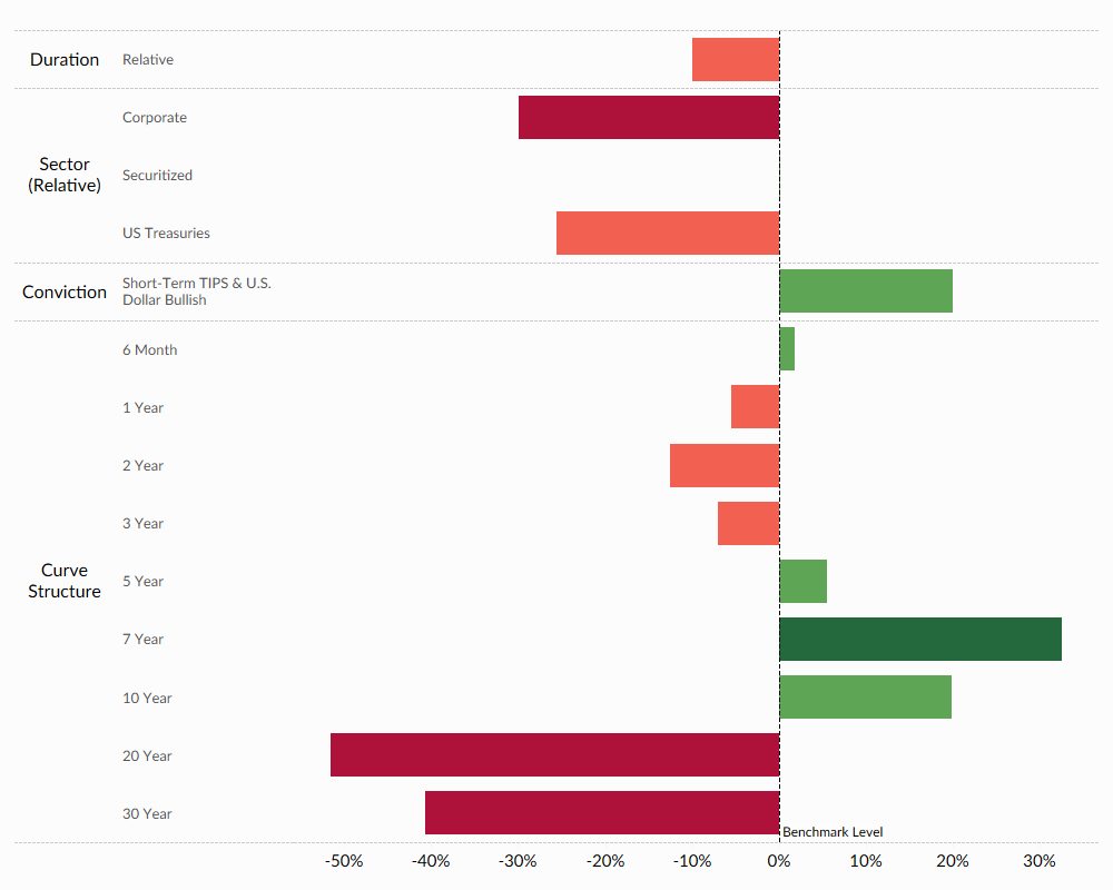| Neutral Securitized | The index holds a neutral position relative to the benchmark within the securitized sector. Increasing volatility makes owning MBS less attractive. |